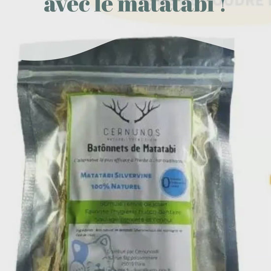 Les bâtonnets de Matatabi aident à nettoyer les dents et à réduire la plaque dentaire, tandis que la poudre stimule le jeu et réduit l'anxiété. Ensemble, ils offrent une double action bénéfique pour la santé physique et mentale de votre chat.