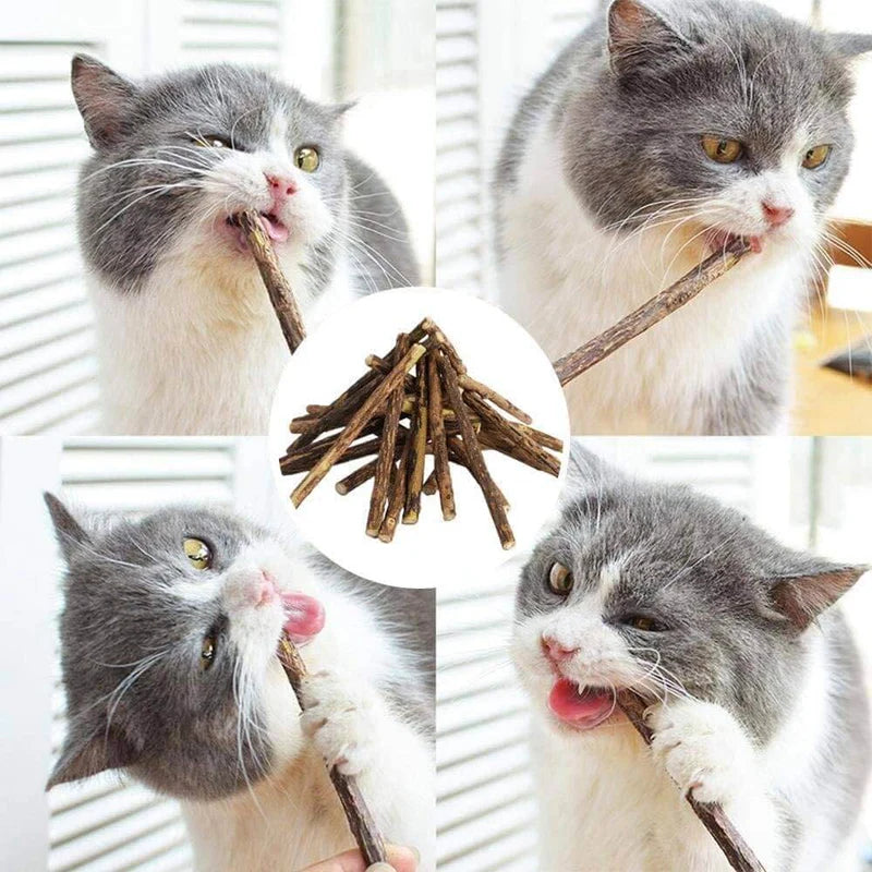 Les bâtonnets de Matatabi sont une alternative ludique à l'herbe à chat. En plus de divertir votre chat, ils contribuent à sa santé dentaire. Les huiles essentielles naturelles présentes dans ces bâtonnets ont un effet stimulant qui encourage le jeu et la mastication, aidant ainsi à nettoyer les dents de votre chat et à réduire la plaque dentaire.